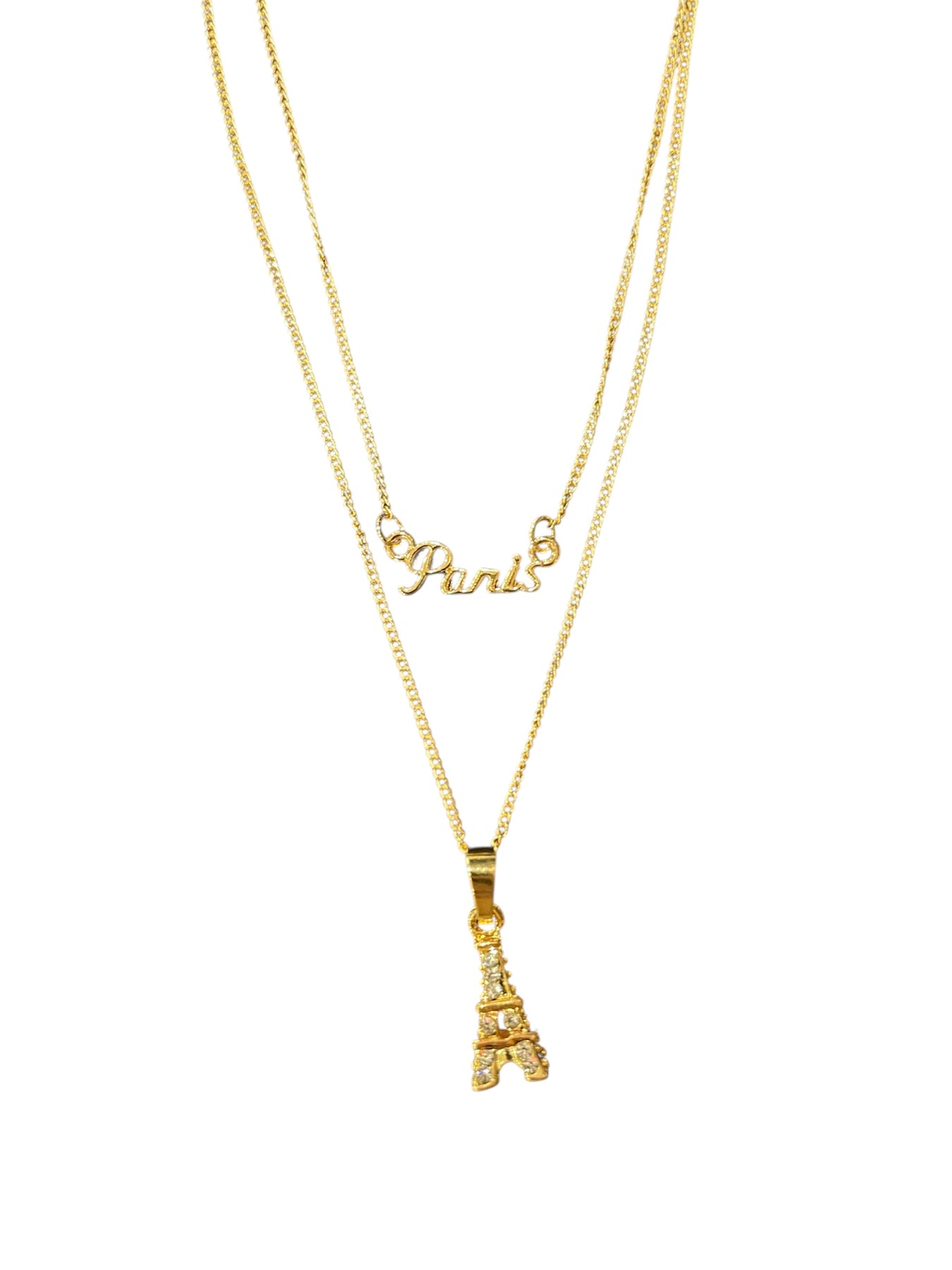 Laissez-vous séduire par ce collier double chaîne, disponible en finition argentée ou dorée, qui capture tout le charme et l’élégance de Paris. Son design délicat est sublimé par une inscription “Paris” emblématique et une petite Tour Eiffel ornée de strass, apportant une touche lumineuse et raffinée à votre tenue.