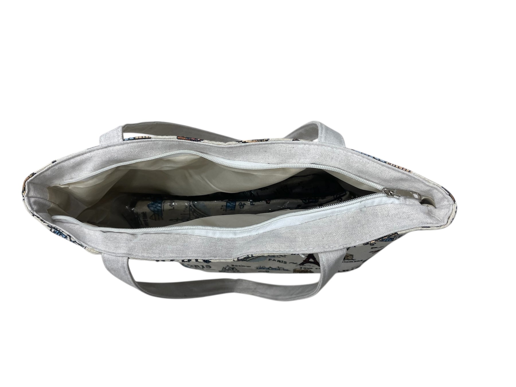 Pratique et élégant, ce sac met à l’honneur les plus beaux monuments et paysages de Paris. Son design riche en détails représente la Tour Eiffel, le Sacré-Cœur, Notre-Dame, l’Arc de Triomphe, ainsi que des scènes emblématiques de la capitale comme la Seine, ses ponts, le Moulin Rouge, les plaques de rues, le Louvre et les toits de Paris.