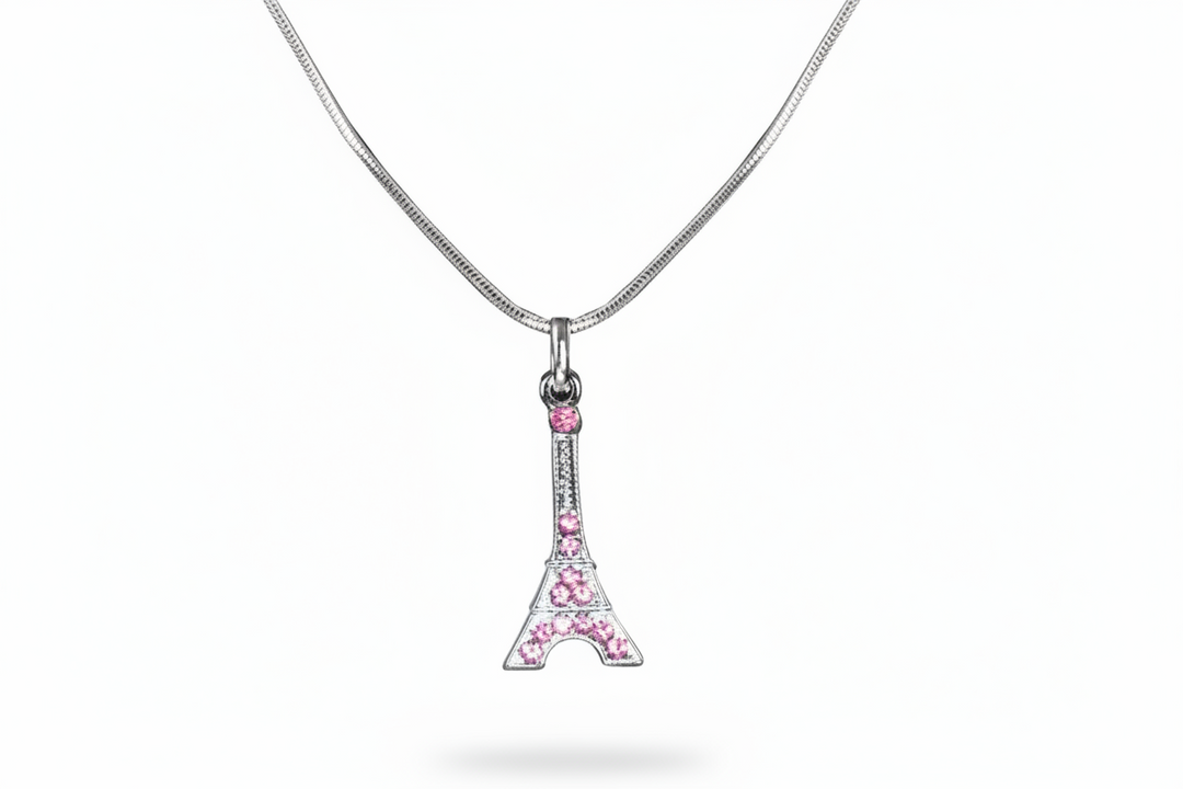 Necklace with pink rhinestone Eiffel Tower