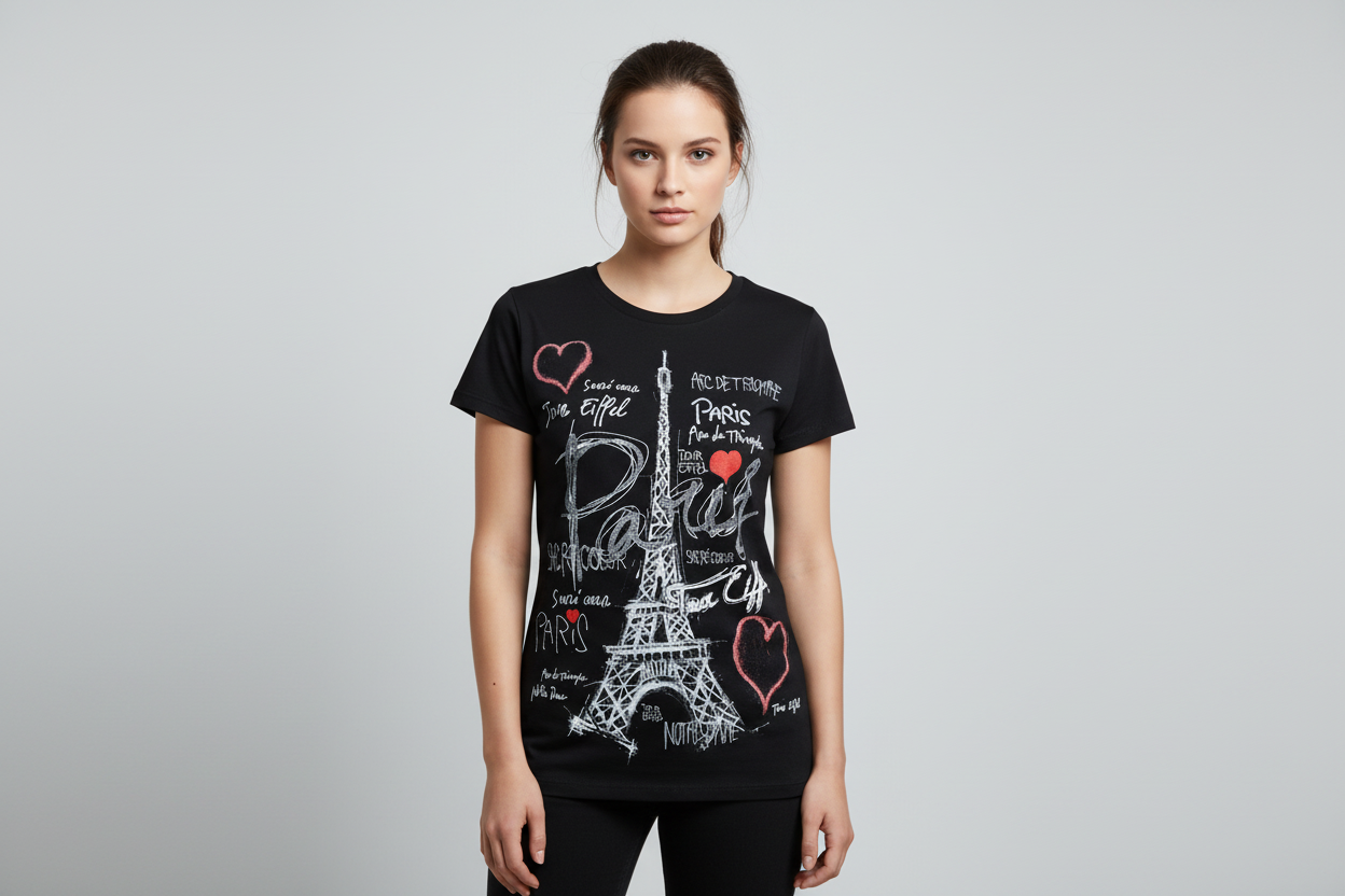 Camiseta Torre Eiffel Corazón París color negro