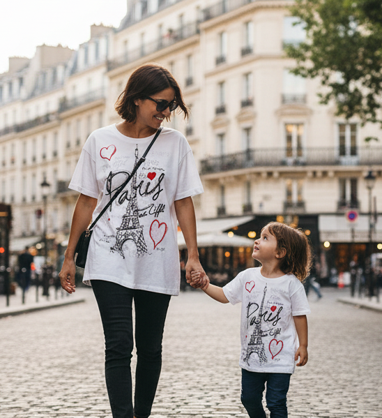 T-shirt para mulher Torre Eiffel Paris com corações