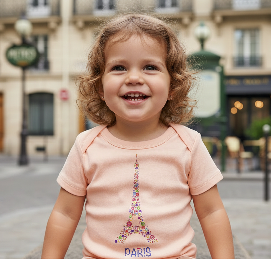 Adorável body para menina Torre Eiffel em flor - Lembrança de Paris