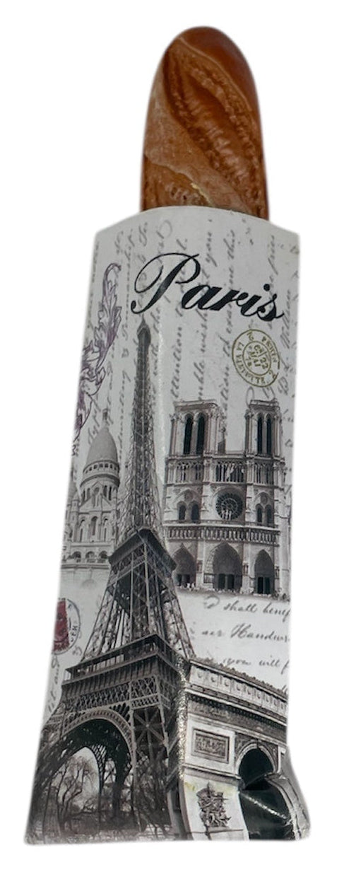 Adicione um toque divertido e parisiense à sua cozinha com este ímã em forma de baguete! Como se tivesse acabado de sair de uma padaria, este pequeno pacote apresenta de forma charmosa os monumentos mais emblemáticos de Paris, sendo uma lembrança típica e divertida da capital.