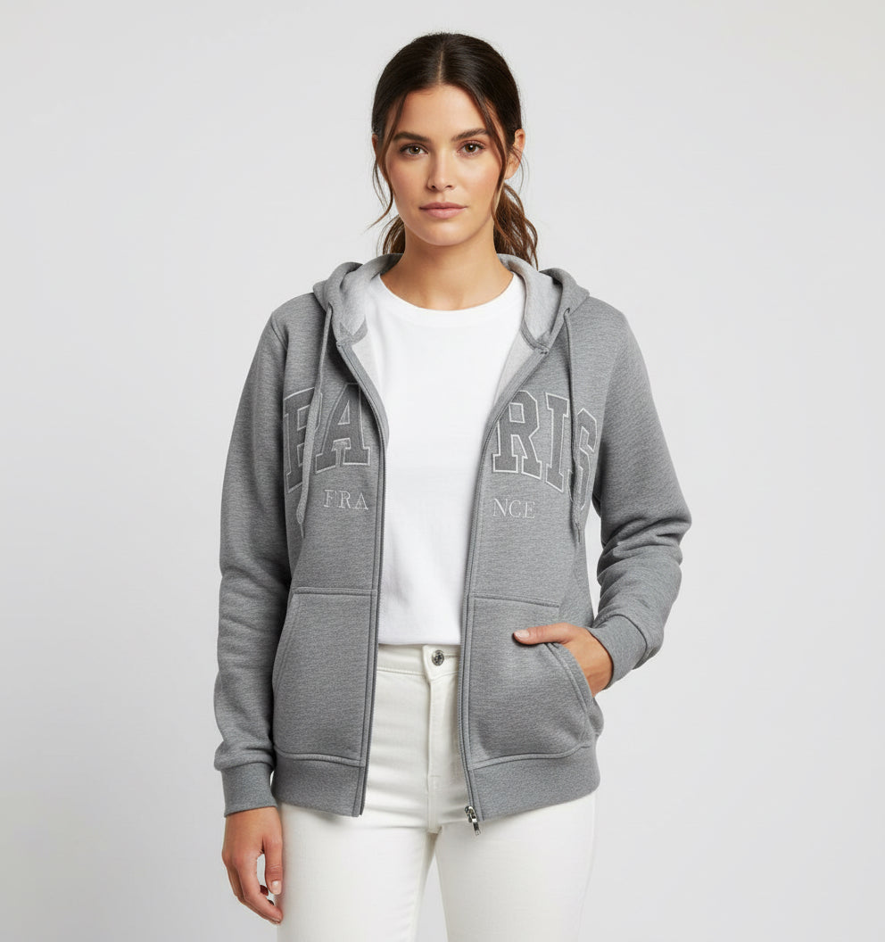 Moletom Paris France com Zíper – Cinza